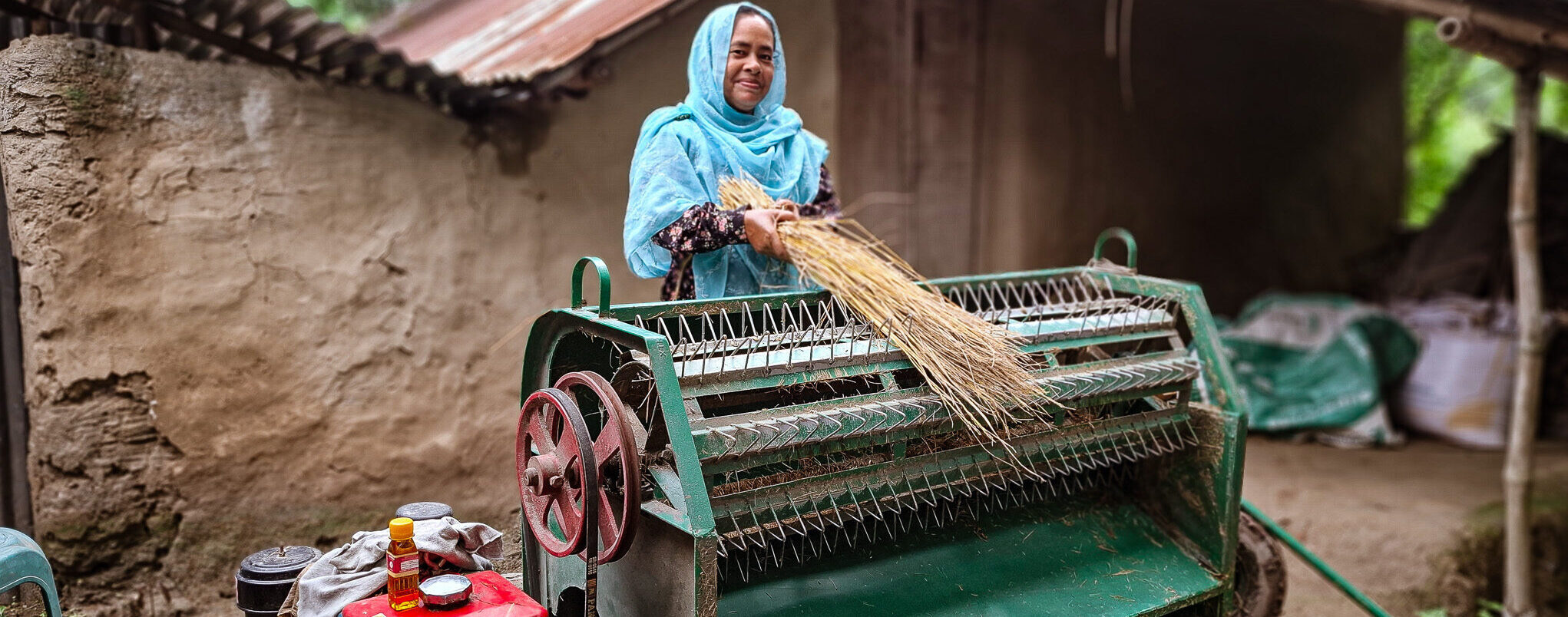 Met steun van het project kreeg ze uiteindelijk een moderne, vrouwvriendelijke dorsmachine – waar ze zelf de helft aan heeft meebetaald. Voor Rubina voelde dat als een echte doorbraak – eindelijk kon ze haar werk sneller, lichter en professioneler aanpakken.